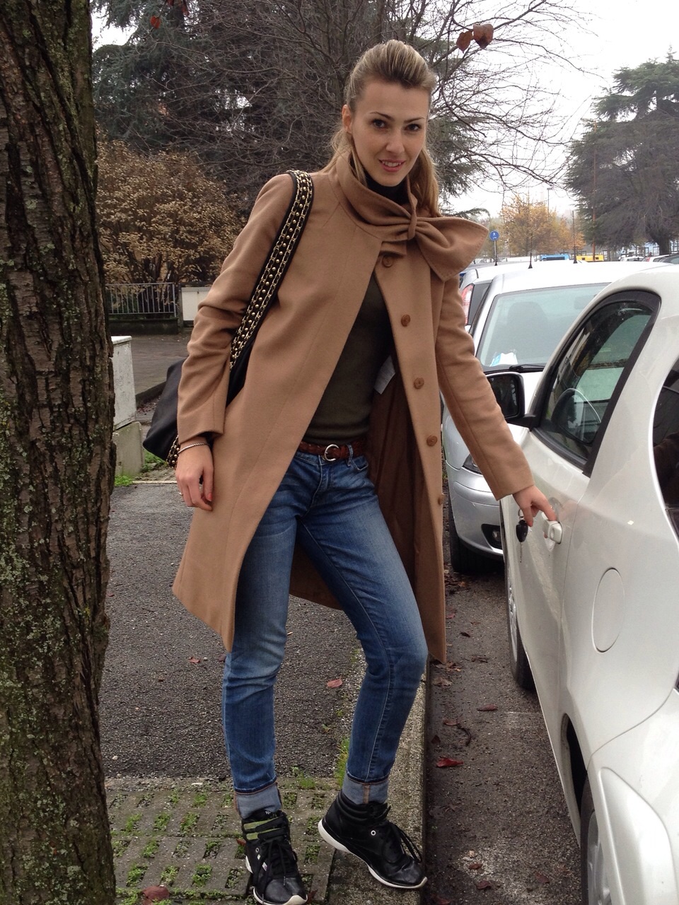 Camel coat is a huge trend this season, better if oversize and boyfriend cut! However, I chose a more classical, straight version (as it will last me longer in time – good coats are not cheap), but with an elaborate neck, that makes it interesting and keeps me warm! 😉