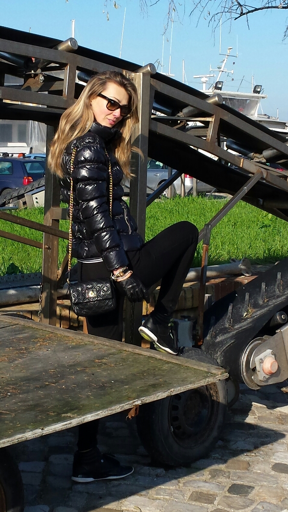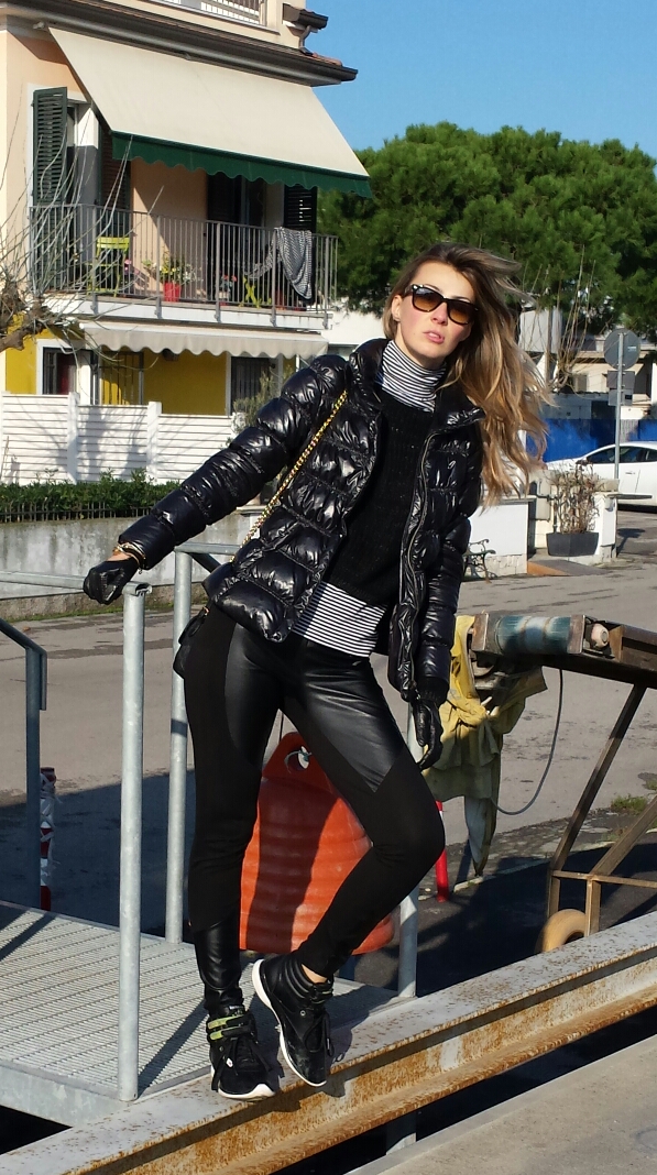 Later, I went to check out the situation at the fishermen’s port! All black runners, leather patched leggings, purse, gloves and sunglasses were perfect for climbing exploration! 💣💤💥