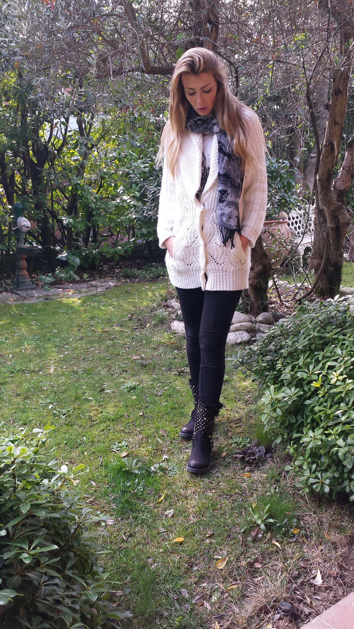 Here, I chose to contrast the look with patched black leggings and embellished biker boots! ππ