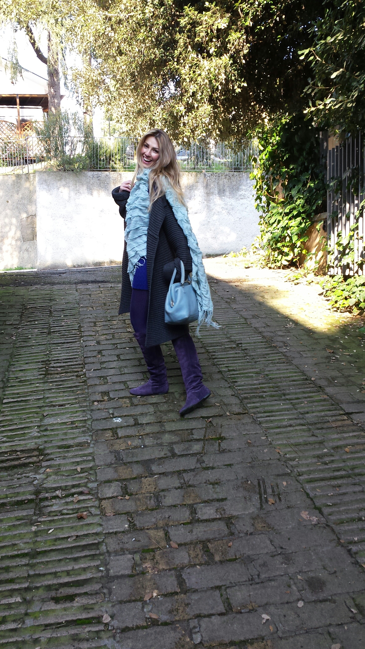 Today, I’m going monocrome from on purple-blue! I desided to wear a little wool dress, thick printed tights andΒ high flat boots! I have to admit that this outfit makes me feel a bit like iconic Brigitte Bardot in swinging sixties! πππ