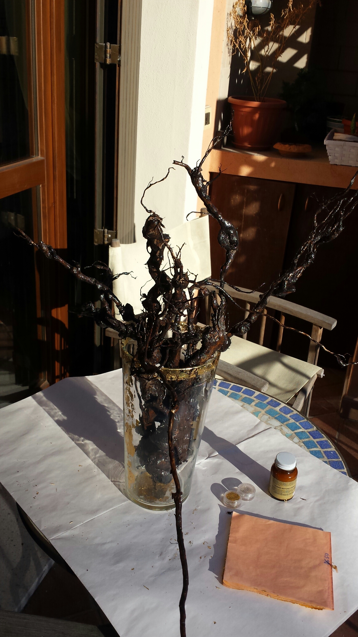 Once you got these ready, you can decide to paint or stain them (I stainned mine in dark wood, as I already had some stain and I wanted to decorate them with white and gold butterflies). π However, you can also choose to paint your roots white and decorate them in red or blue or whatever works in your home!