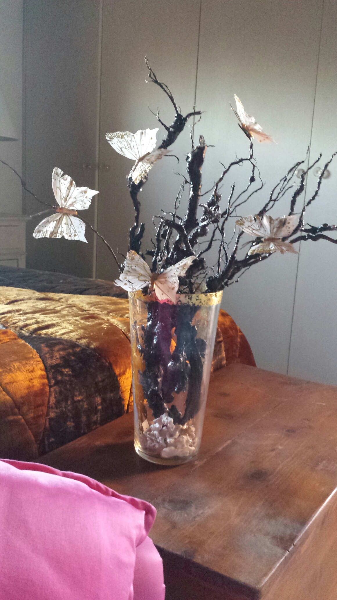 Last but not least start gluing your branches decorations! I used white and gold butterflies and swarowski crystals (you can use beards, birds or whatever you like most)!πππ