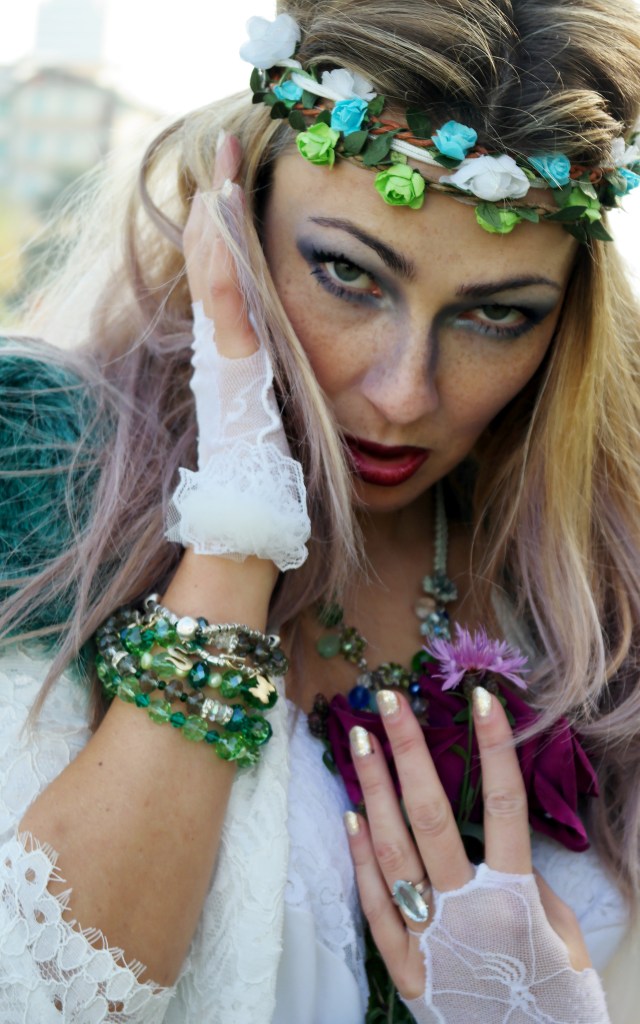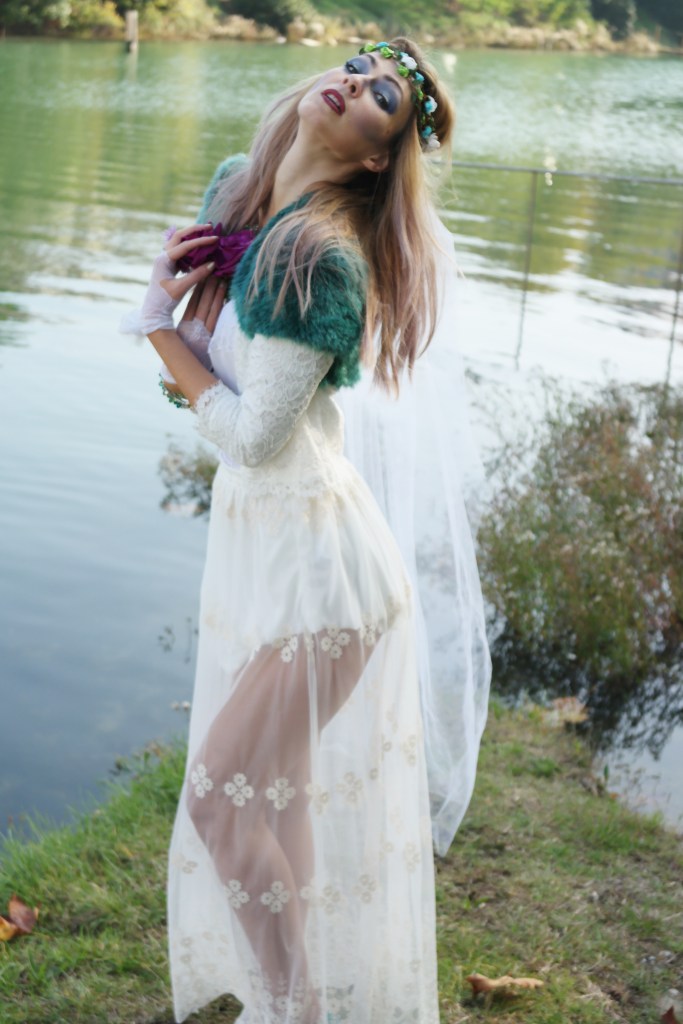 The look was sealed by a colorful suede pump, in petroleum green, of course, to match the rest of accessories! ❤ Overall, our Corpse Bride had a bit of Hippy Mermaid Feel to her, maybe she was not very scary, but she sure was very romantic and delicately fashionable! ❤