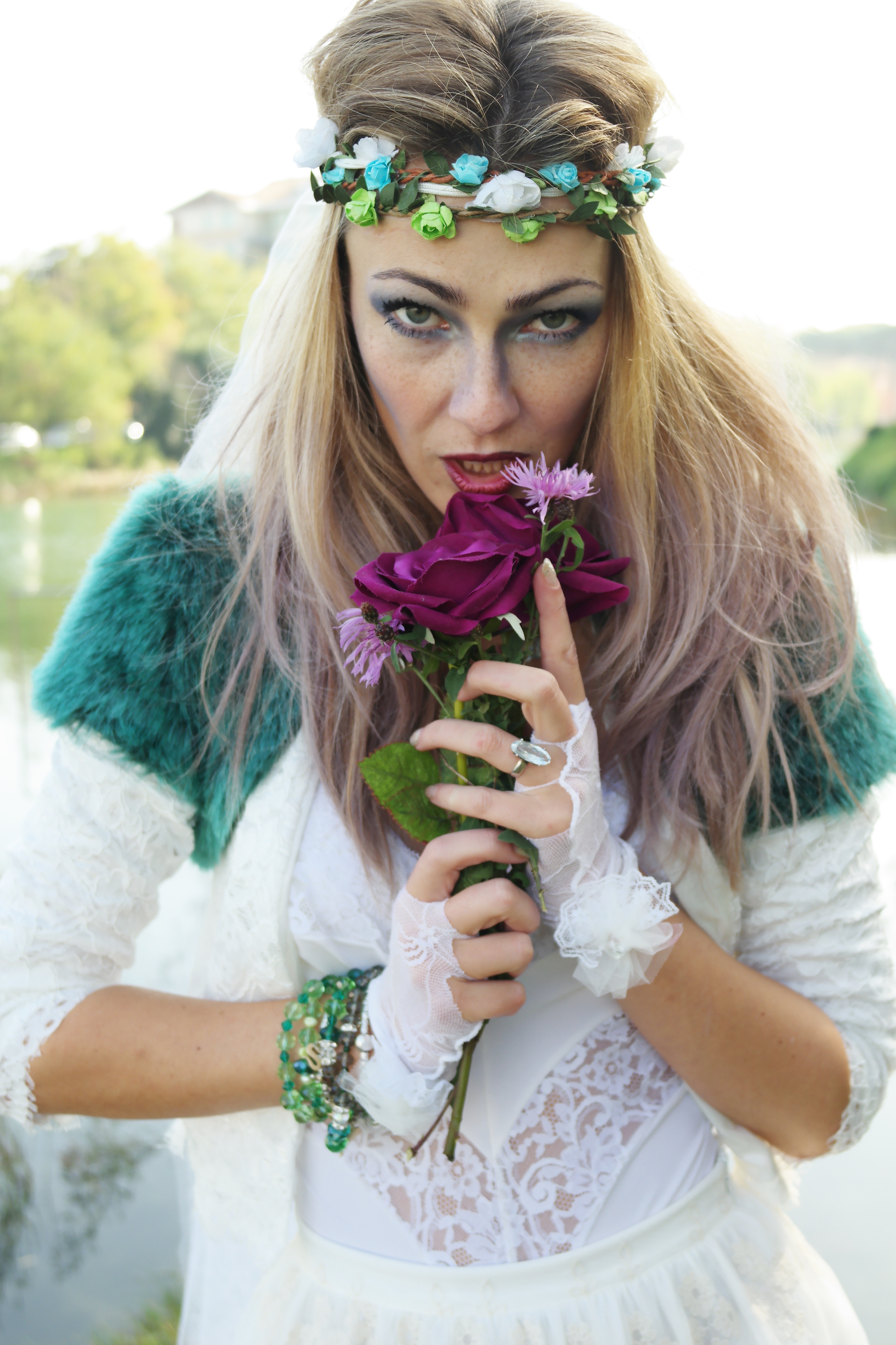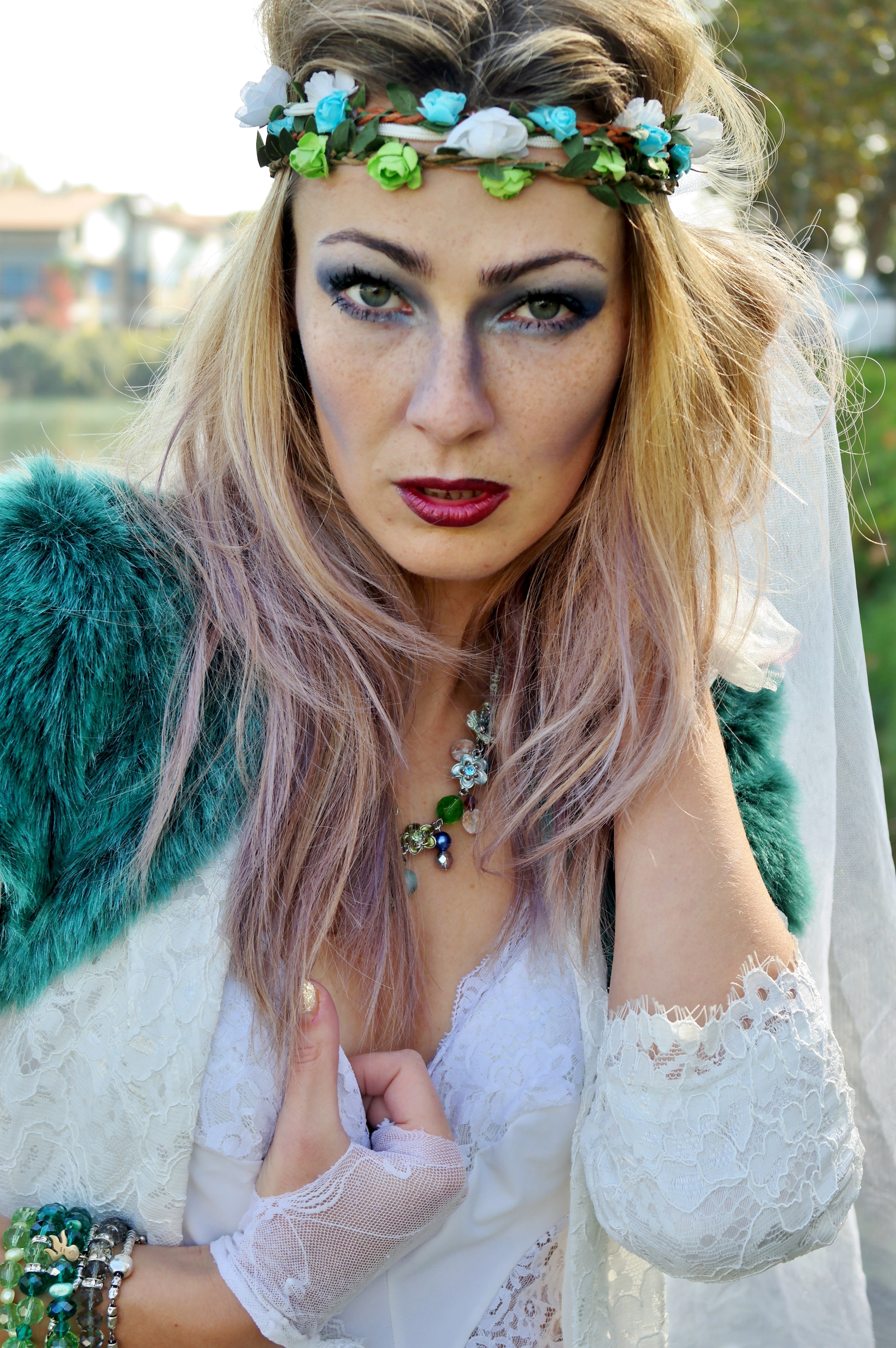 The look was sealed by a colorful suede pump, in petroleum green, of course, to match the rest of accessories! ❤ Overall, our Corpse Bride had a bit of Hippy Mermaid Feel to her, maybe she was not very scary, but she sure was very romantic and delicately fashionable! ❤
