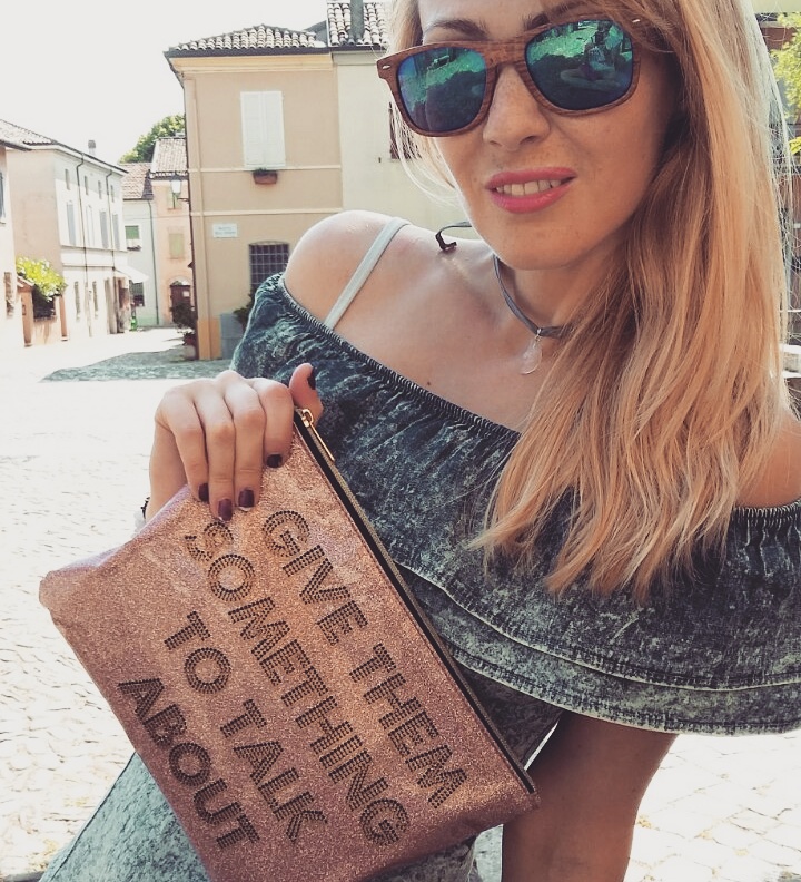 If you are dressed vintage remember to accessorize with modern pieces, you don’t want to look like you got transported from the past era in a costume, but simply have a slight fashion nostalgia! In fact, I added wooden sunnies and a plastic sparkle zip up bag to give it a hip touch! 💥💙 👛😎