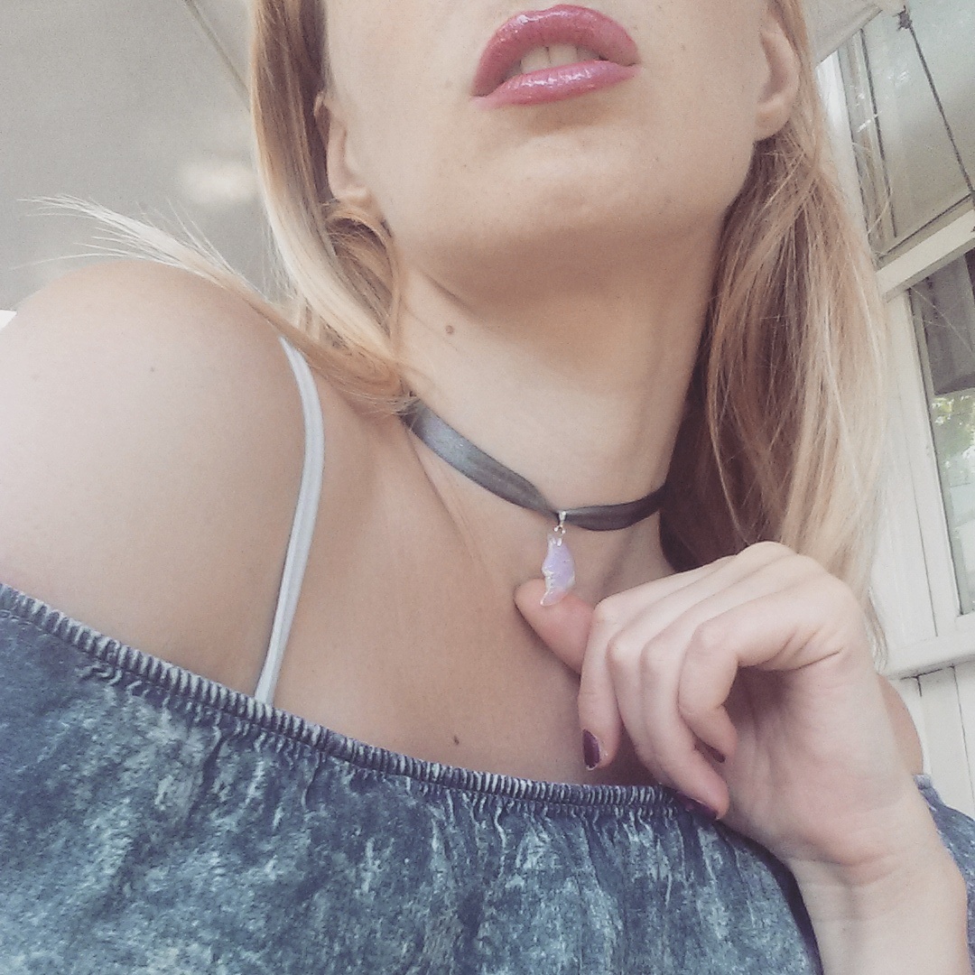 Wearing off shoulder called for a nice choker (also 90s inspired – I love making those and plan to post a tutorial with some cool ideas for you might want to make on my new vlog, coming next week)! 🎬💥💣💫
