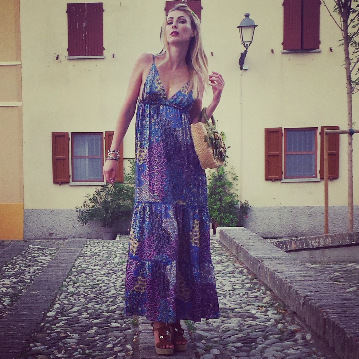 I bought this because France and it has been my lifesaver ever (French girls have it all figured out long time ago just always look stylish and have no ‘no days’)! I love its multicolored parsley fantasy print , but floral prints are also wonderful! 💐💟💜💐 I prefer my long dresses in silk or cotton, as summers in Italy are quite hot, so natural fabrics work best!