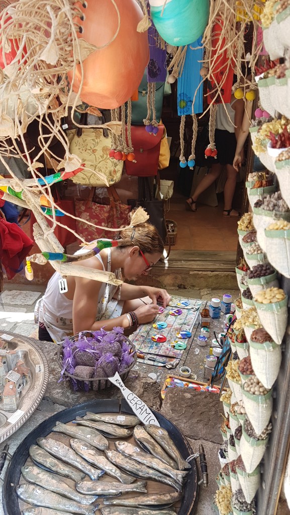 As you go up to the main Church terrace, through the little stone streets of the town, you cannot help but notice the mini stores of local artisans that create art and souvenirs for sale❣ Of course, I needed to get some parfumed lavender bags for my closet and little glass art tiles for my washroom, while my mom got herself a sea painting ❣💦