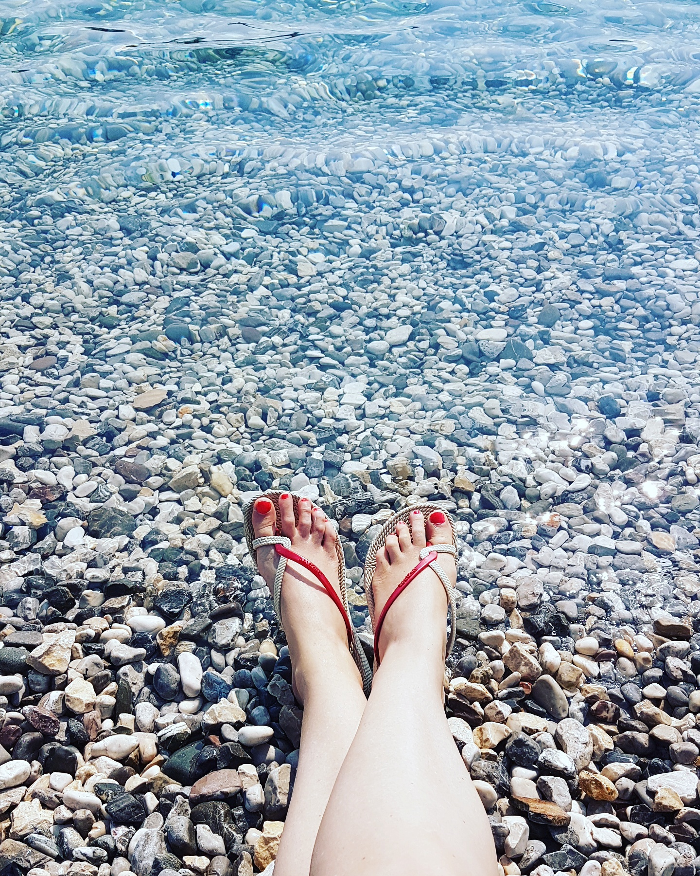 After lunch we went to the beach❣ It was a beautiful sunny day and we were dying to go swim in the water! The beaches are about 10 minute walk from the town and they are subdivided in sections! First there is a cement block of structures on the sea, where you can rent your umbrella and beach beds, followed by a pebble beach and a more wild part beach! You can either lay on your towel or rent umbrella and lays on any part of the beach❣ Showers are available everywhere, as well as toilets and bars❣ We decided to stop at the pebble beach! 💦☉