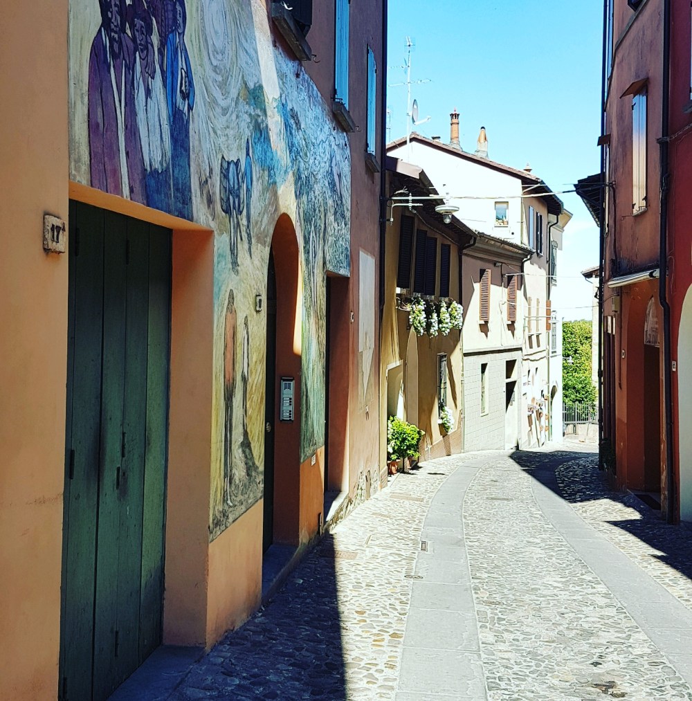 Somewhere on the Italian hills, not too far Bologna (yes the city of Lasagna and Ragu Bolognese and the world’s oldest University), there is a medieval town of Dozza! Looking from far, it is like many other small medieval towns in Italy (borghi medievali); easily recognizable by tiny streets laid in pebble-stones, enclosed by a wall of houses decorated with flowers on the windows and grandmas sitting by the entrance doors ❣