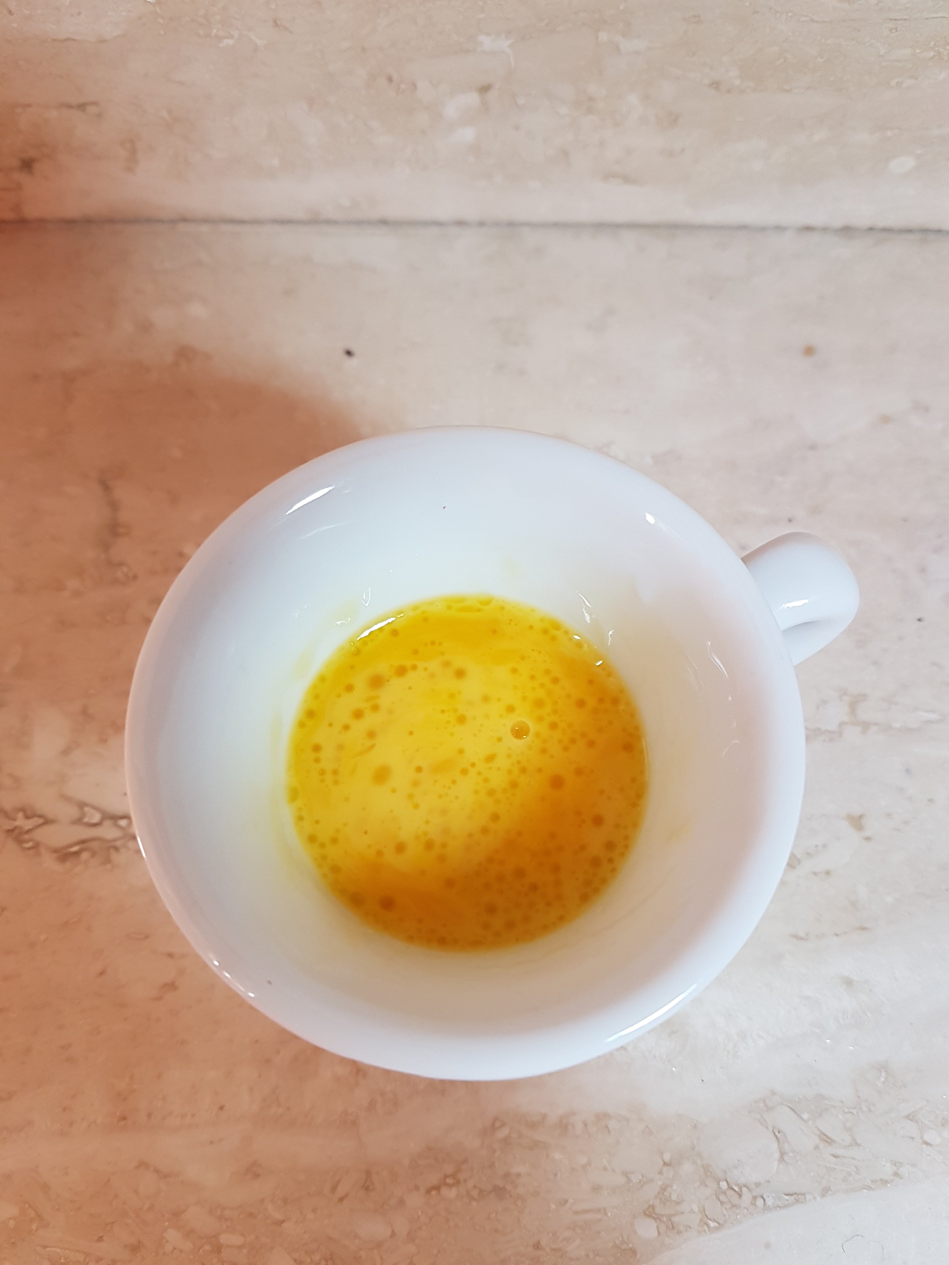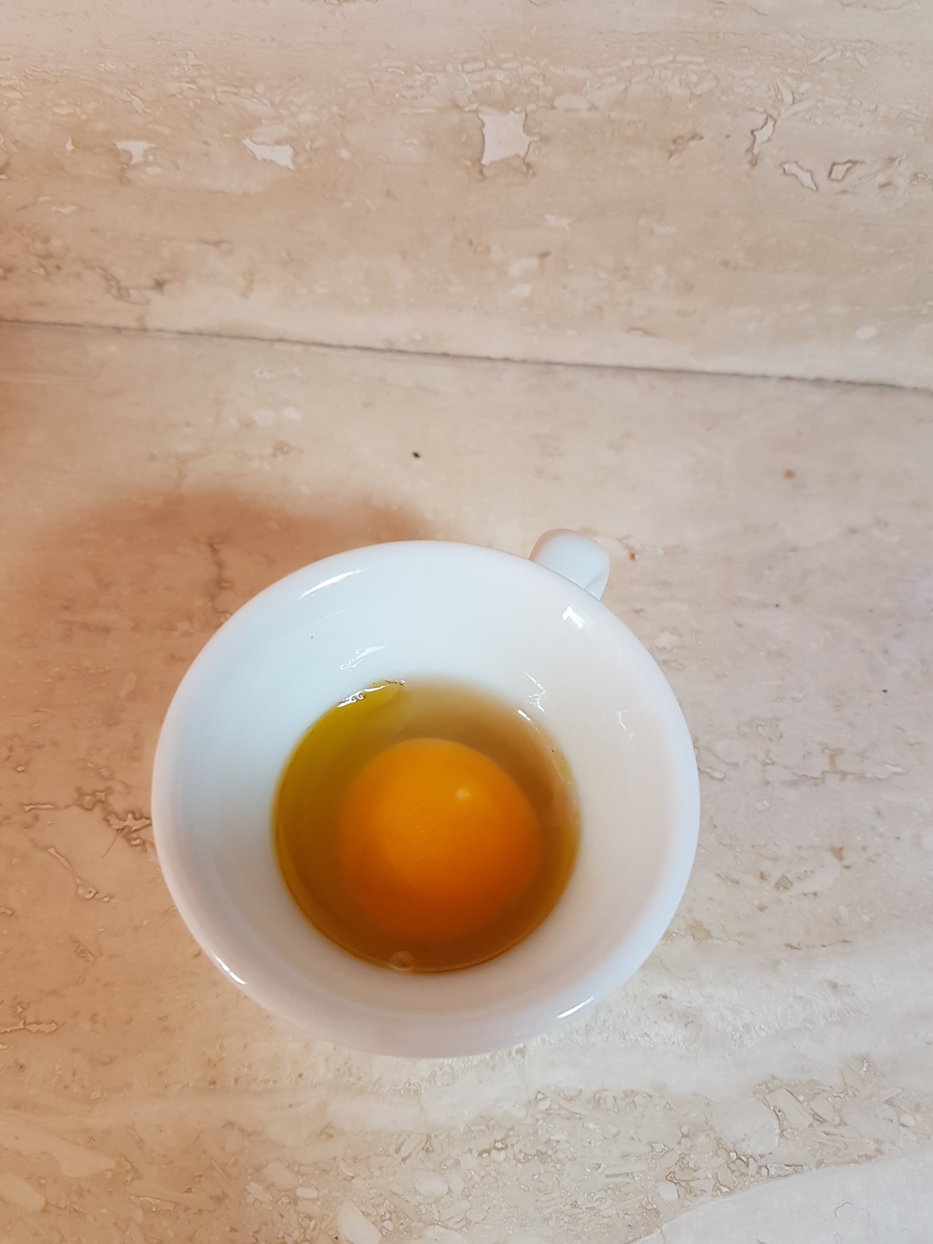 So take a raw egg (an egg is a little chick in the making, so it has all the vitamins and minerals a body needs, sort of like a chicken placenta), add a half tea spoon of olive oil for extra nutrition and mix together. 💫🥚💫