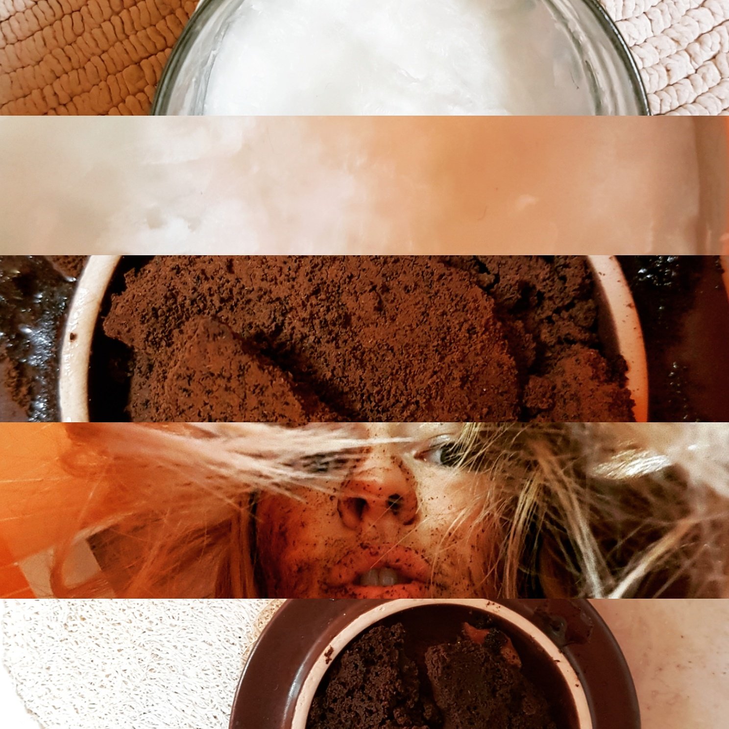 All you will need for your all over body scrub is brewed coffee grinds, yes, the used coffee remains from your coffee maker (love this part, no need to buy anything and we get to recycle)! I never throw away the used coffee from my mocha, but let it dry up on a dish in open air (do not place humid used grinds in a closed container, because they will form yucky mildew)!